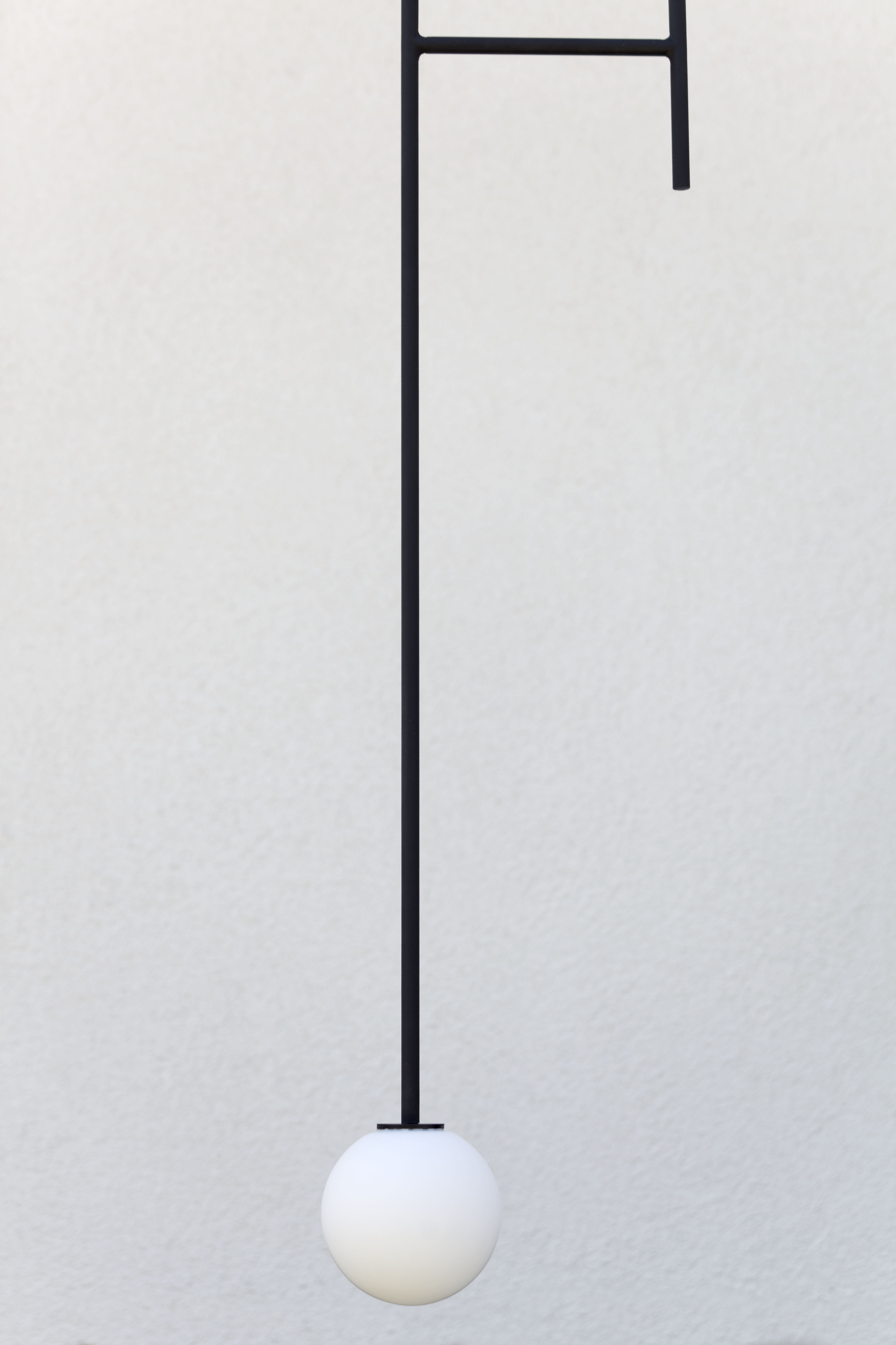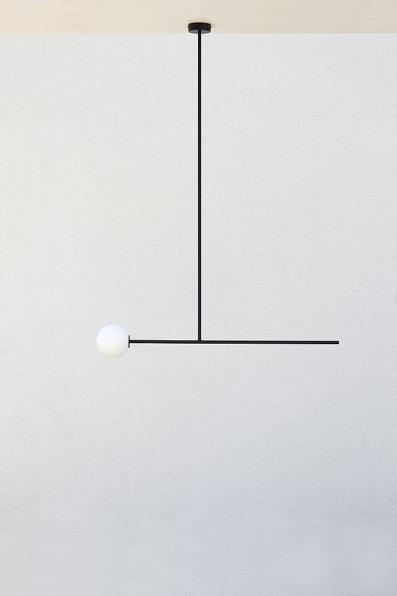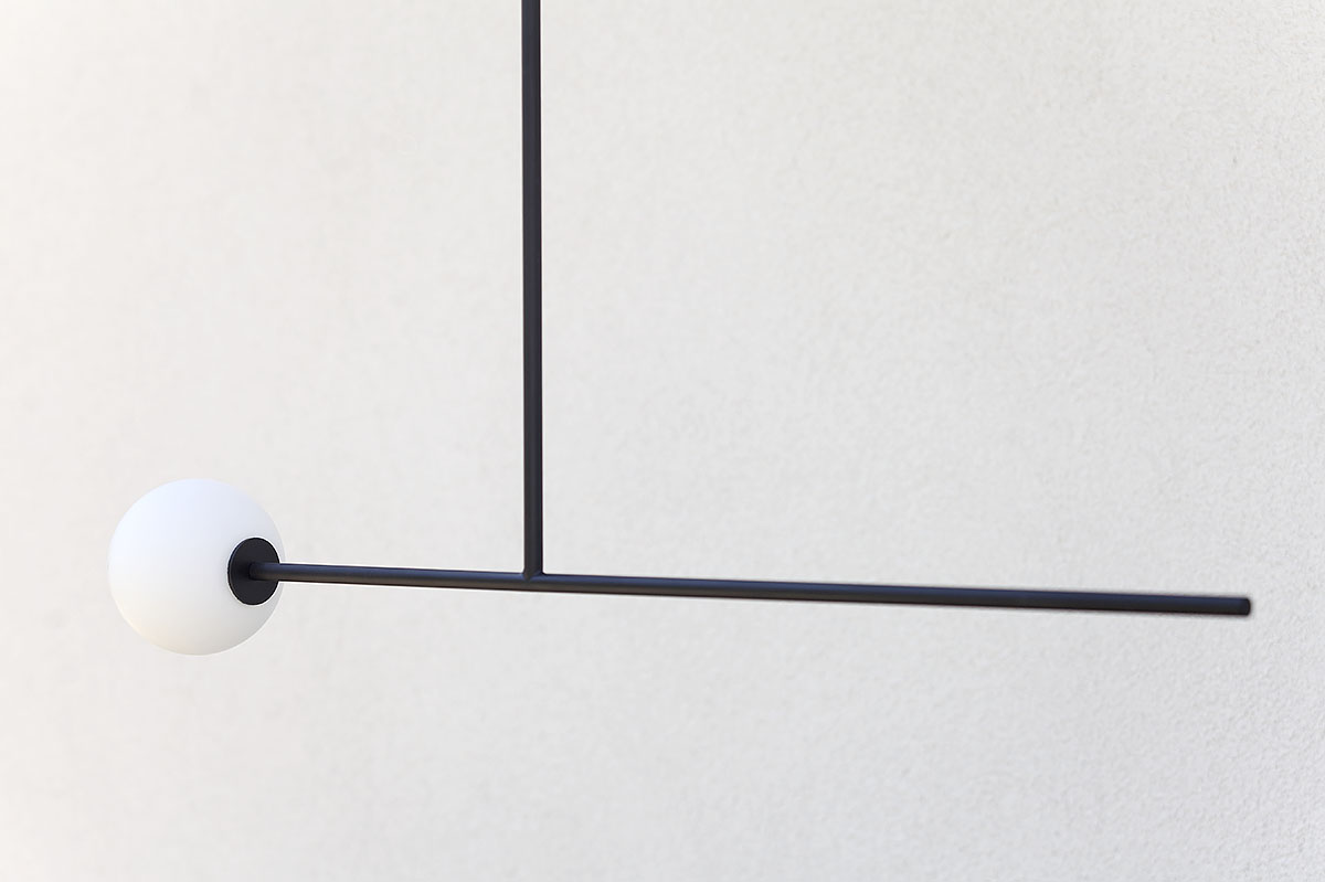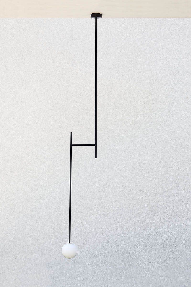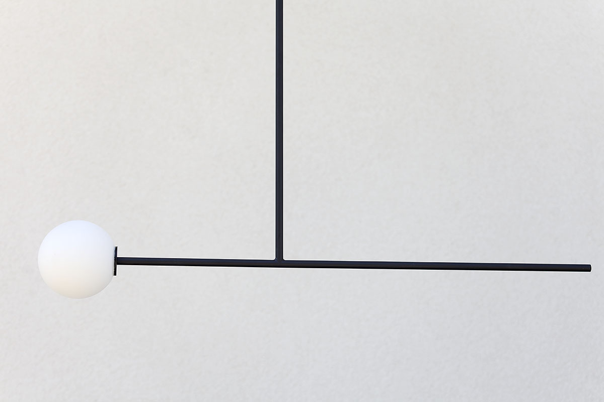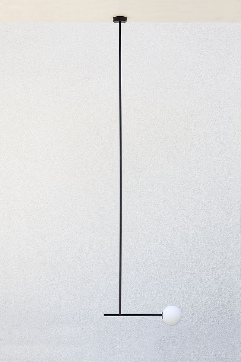 Lampa do pokoju ma nieco mniejsze rozmiary. Szklana kula ma średnicę 14 cm, podobnie jak poprzednie lampy do sypialni, natomiast jej długość to tylko 115 cm. Podobnie jak inne cechuje się dbałością o wykończenie detali. We wszystkich lampach zależało nam na estetyce, na czystej formie, na ładnym połączeniu kuli z elementem konstrukcyjnym.